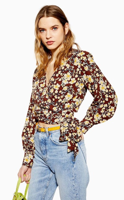 Floral Wrap Crop Blouse