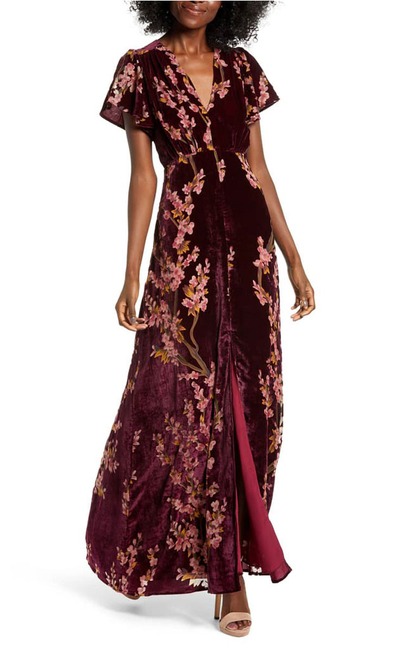 4SIENNA Floral Burnout Velvet Maxi Dress