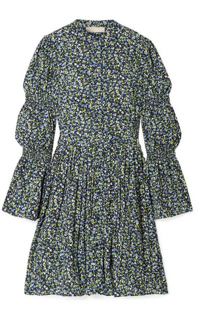 Michael Kors Smocked Floral-Print Crepe Dress
