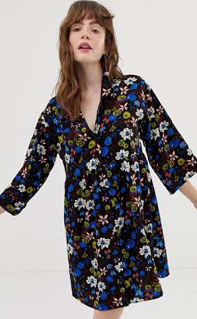 Monki Flower Print Smock Dress