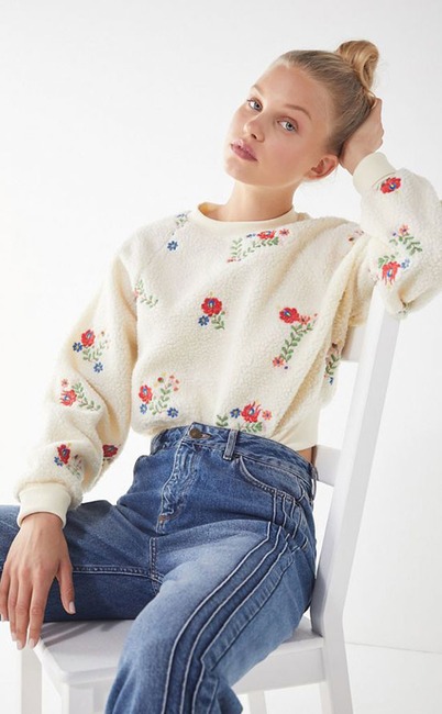 UO Aster Floral Sherpa Cropped Sweatshirt