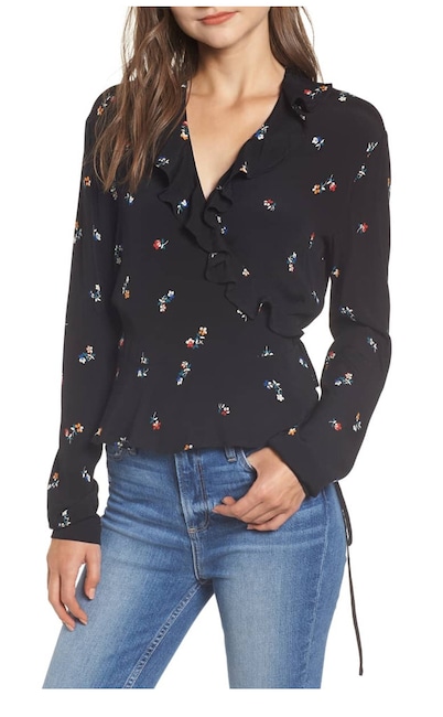 RAILS Simone Floral Ruffle Wrap Blouse
