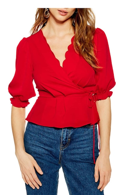 TOPSHOP Scarlett Scalloped Wrap Blouse