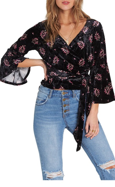 BILLABONG Embrace It Print Velvet Wrap Top