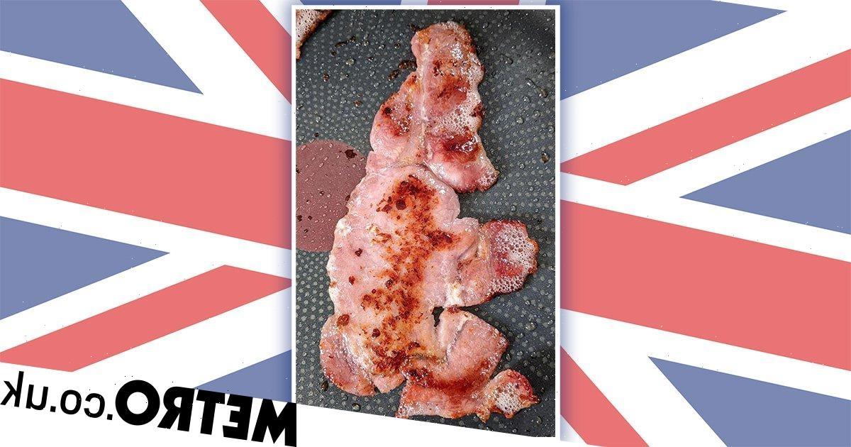 A man has taken to Reddit to share his unusual culinary creation: a bacon rasher that perfectly forms the shape of the UK.