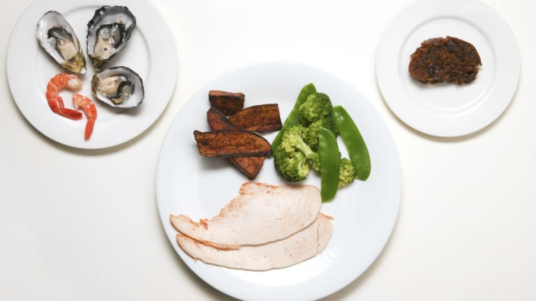It's the ultimate anti-Christmas feast: three oysters, one-and-a-half prawns, an 80g slice of roast turkey and a serving of vegetables.