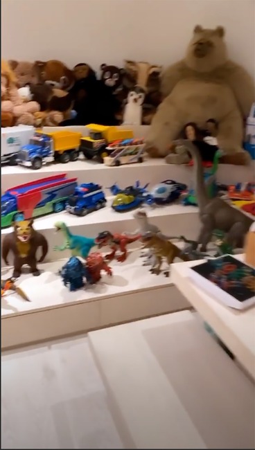 Kim’s 4-year-old son plays with his stuffed animals, trucks and dinosaurs here.