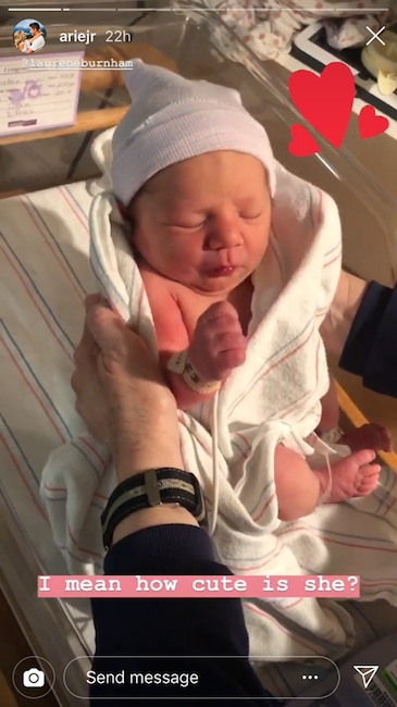 “This was first time she laid eyes on me and I’m forever changed,” Arie Luyendyk Jr. shared on Instagram when celebrating the arrival of baby Alessi.