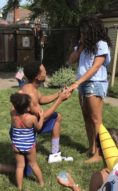 She said yes! The hip hop star proposes to his leading lady during a Fourth of July family gathering in 2018.