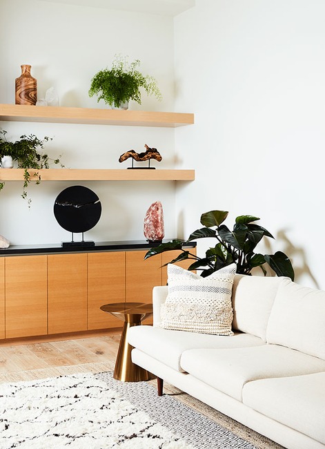 In photos of the finished home, fans can see Dewan’s “warm, calm, chic” interior style come to fruition in nearly every detail of the design aesthetic, from the neutral tones used throughout to the array of textured pillows, rugs and blankets that just scream cozy. “In Jenna’s case, they wanted the home to be as cozy as possible so I wanted to create areas throughout the home to foster intimacy and togetherness,” Fetherston told AllModern.