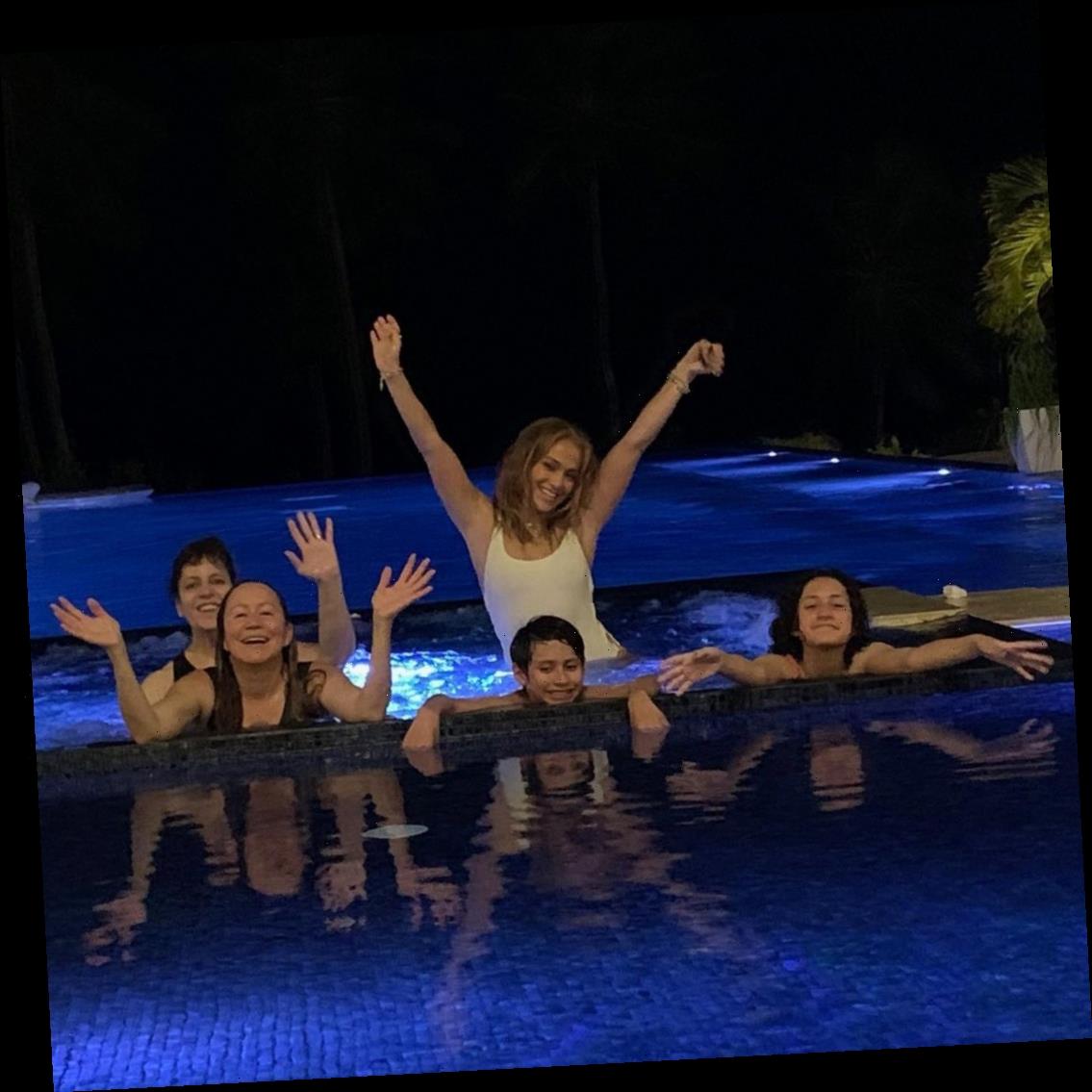 The superstar, 51 — who is currently in the Dominican shooting her upcoming comedy Shotgun Wedding — posted three snapshots to Instagram Wednesday that included a picture of Lopez going for a nighttime swim in a massive pool with her 13-year-old twins Emme and Max, who she shares with ex Marc Anthony. Also seen in the photo were photographer Anna Carballosa and Elaine Goldsmith Thomas, who are both working on Shotgun Wedding.