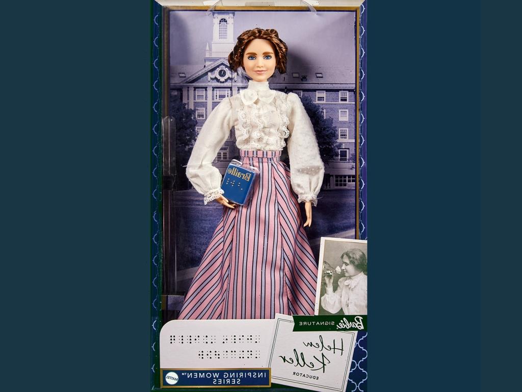 The Helen Keller Barbie was created in collaboration with the National Federation for the Blind, a membership and advocacy organization for blind Americans. The doll and her accessories were painstakingly recreated not only to be true to Keller’s time period but to also make her more accessible for blind people. The box features braille lettering, and the book the doll is holding has molded braille lettering on its cover.