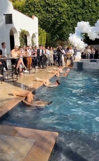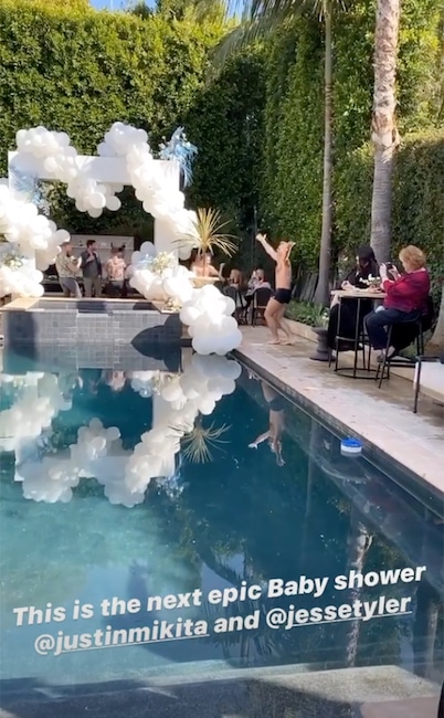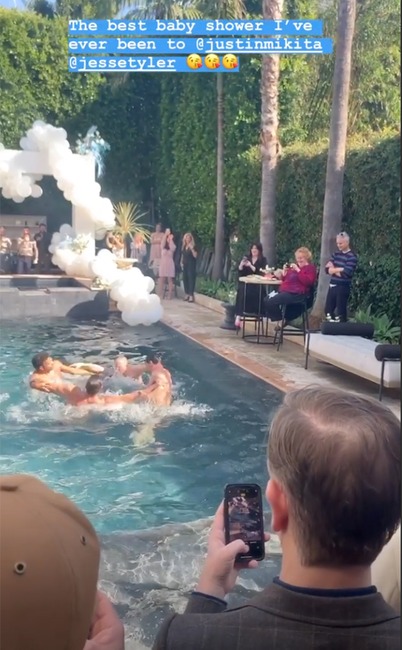 The actor’s Modern Family co-stars Sofia Vergara and Sarah Hylandattended the couple’s baby shower, which was held at a private residence and featured a backyard pool performance from male synchronized swimmers, set to a medley of songs that included Britney Spears‘ “…Baby One More Time.”