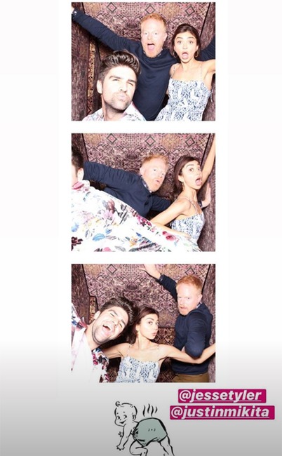 The dads-to-be pose for pics in the photo booth with Sarah Hyland.
