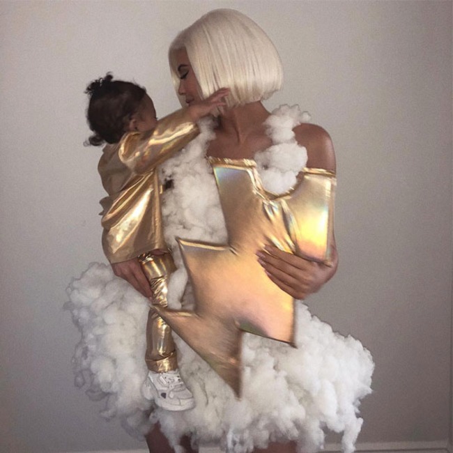 Lightning struck twice when Kylie and her little one dressed as a storm cloud and bolt of lightning for Halloween in 2018.