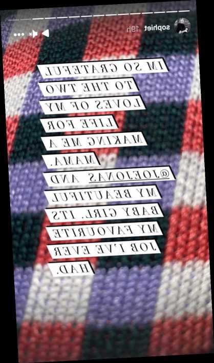 "Im so grateful to the two loves of my life for making me a mama. @JoeJonas and my beautiful baby girl," wrote Turner on her Instagram Story, adding, "Its my favourite job I've ever had."