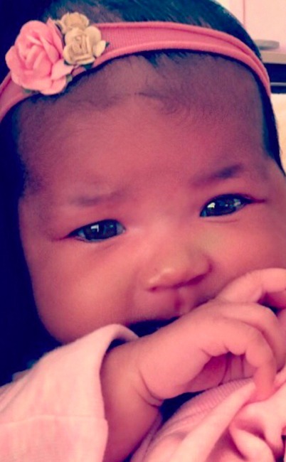“Hi my sweet True!!” the proud mama wrote. “Her chunky thighs are my weakness.”