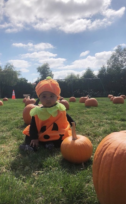 Aunt Kourtney snapped this cute picture of True while visiting a pumpkin patch in October. True fit in perfectly.