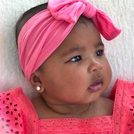 Khloe Kardashian took to Instagram on Monday to share a new photo of True Thompson looking pretty in pink. The 4-month-old baby girl donned an adorable Lil Lemons dress and matching headband from Amazon. Her proud mama finished the look with a pair of sparkly stud earrings.