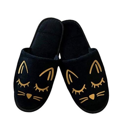 Cozy Cat Slippers – Black and Gold