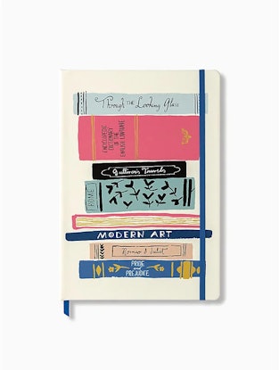 This 10" by 7" notebook comes with all the bells and whistles, including an elastic closing strap, gilded pages, an interior pocket, and a ribbon bookmark.