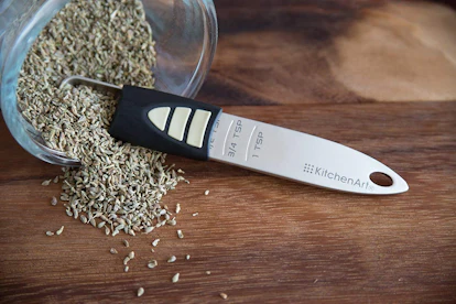 Unlike traditional, bulky teaspoons that can take up a lot of space in your drawers, the Kitchen Art Adjust-A-Teaspoon is a single spoon that can be adjusted from one full teaspoon all the way down to one-eighth of a teaspoon. One Amazon reviewer even noted that the champagne satin finish is "quite modern-looking," and that "if the zombies attack you can use the other end of the measurement tool and stab an eye. You can’t do that with an ordinary measurement teaspoon!"