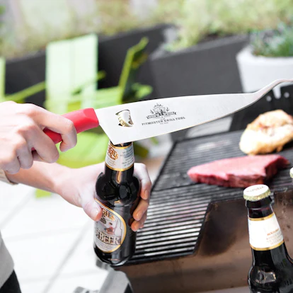 You use it as a knife, but the Ergo Chef three-in-one grill tool also has a built-in bottle opener as well as a food hook flipper located at the tip. The blade itself is made from durable, high-carbon stainless steel that won’t rust or corrode over time, and the ergonomic handle has a non-slip grip for added security.