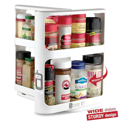 Unlike other bulky, stationary spice racks, the Store It! cabinet caddy is large enough that it can hold taller spice bottles upright. Plus, the pull-out base also rotates so that it’s easy to find exactly what you’re looking for. Each order comes with stick-on labels if you’d like to get extra organized, and it’s also great for other uses (think: inside your medicine cabinet, your workbench, and more).