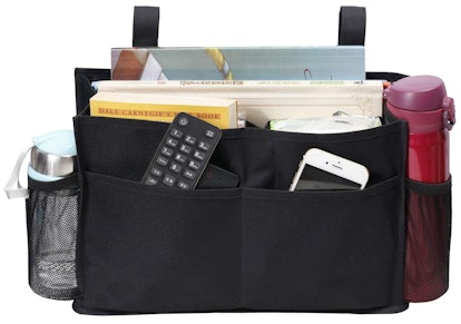 From books to water bottles to cell phones, this hanging bedside caddy will store everything you need, so you can have all your nightly comforts right at your side. It features seven different pockets with various sizes, including one large pocket to hold a tablet, books, and magazines, two small front pockets for thin items like your remote or phone, and two side mesh pockets for drinks. The loop-shaped straps can fasten to any headboard, chair arm, or bedrail, so installation is super easy.