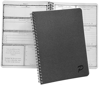 With a soft cover that’s velvet-laminated, this space-efficient goal journal will help you focus on and track your most inspired tasks. By putting your goals tangibly in front of you through sections like monthly objectives, weekly targets, and daily tasks, this journal helps you address your ambitions practically. One fan wrote that it’s "a great book for getting things done" and that it has "lots of extra areas for brainstorming and to scribble your thoughts, [and] cool motivational quotes every few pages."