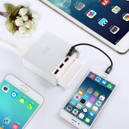 With four USB ports and 40 watts of power, you can quickly charge multiple devices using this desktop charging station. It has universal compatible, so you can take this while you travel, no matter which country you’re heading to. And with the pull-out dock, you can keep your phone propped up while it charges.