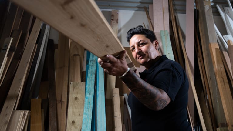 Carpenter Penny Petridis’ festival workshop will empower women ‘to not be scared to get amongst it and give it a go’.Credit:Janie Barrett