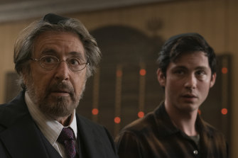Al Pacino as Meyer Offerman and Logan Lerman as Jonah Heidelbaum in Hunters.Credit:Amazon