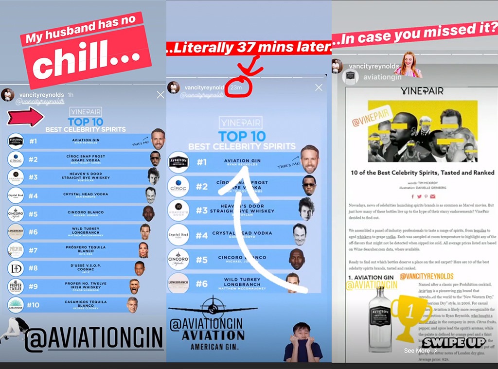 She also shared a screenshot from the Aviation Gin Instagram, which posted VinePair’s original article and review of the brand. She sarcastically wrote, “…In case you missed it?”