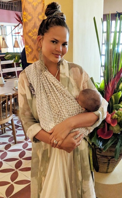 Teigen learns how to expertly wrap her little one, before joking, “Please feel free to get angry and judgmental in my comments below! I know you can’t wait!”