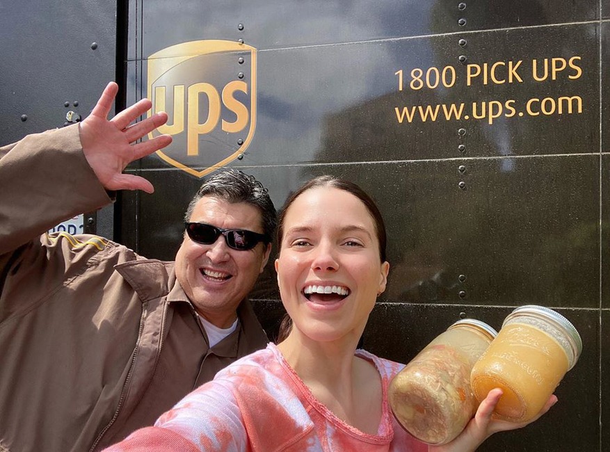 So when she made a massive batch of chicken stew and bone broth, she decided to bottle it in mason jars and hand out to her neighbors and neighborhood essential workers, like JP.