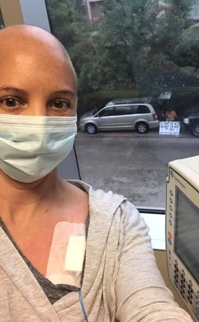 The father of three held a sign outside of her room at the MD Anderson Cancer Center in Sugar Land, Texas, that read, “I can’t be with you but i’m here.” He also thanked the hospital staff on his poster.