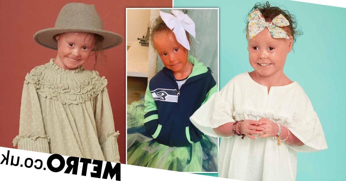 Harper Foy, six, is thought to be one of only 20 people in the USA with harlequin ichthyosis (HI) – a condition that makes skin grow 10 times faster than normal.