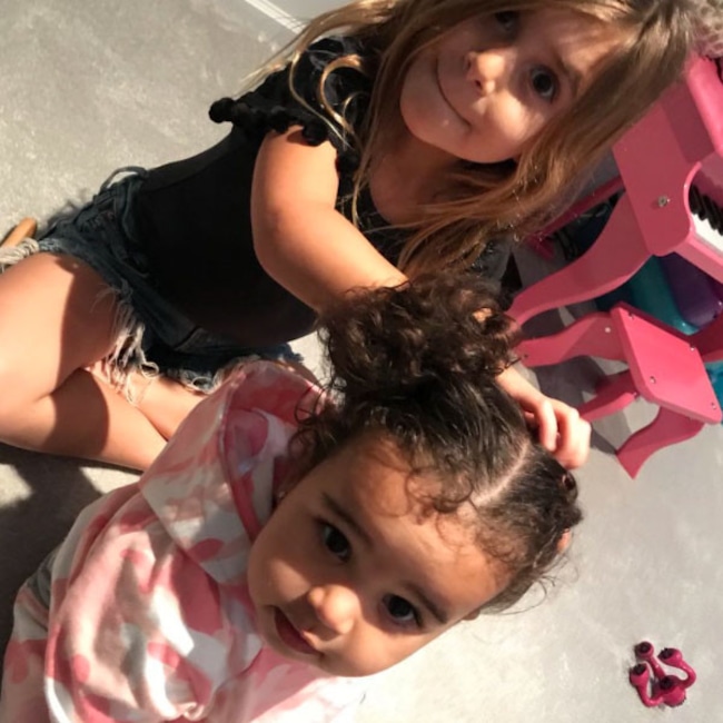 Dream and Chyna look precious with matching flower crowns on Snapchat.