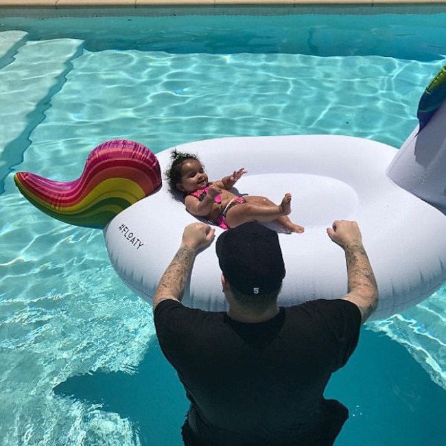 Rob and Dream enjoy a pool day that also includes some fun time on a KOLOLO Giant Unicorn inflatable.