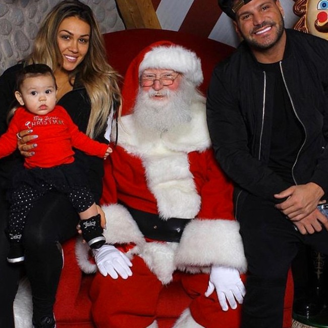 The Jersey Shore star posted this photo of him, ex-girlfriend Jen Harley and their baby girl Ariana with Santa over Christmas 2018.