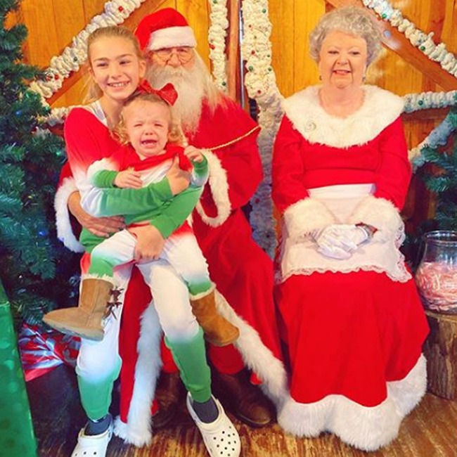 Actress Jamie Lynn Spears also joined in on the fun with pictures of her little bundle of joy crying during her trip to meet Santa. “Well, umm…. let’s just say she wasn’t thrilled about Santa,” Jamie captioned the cute picture.