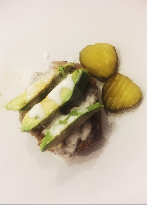 To make it the Lemony Garlic sauce, you simply add grated garlic, more lemon juice, and then some lemon zest. The consistency of the sauce isn’t as similar to mayo as the look of it is, but it tastes really refreshing and is honestly more tasty than actual mayo, IMO. The turkey burger recipe isn’t anything novel, but they’re still tasty AF. And combined with avocado, the sauce, and pickles, it’s all super delicious. (The recipe calls for pickled cucumbers, for which Paltrow has a recipe on another page, but I opted just to add pickles as I’m not a fan of pickled cucumbers.)