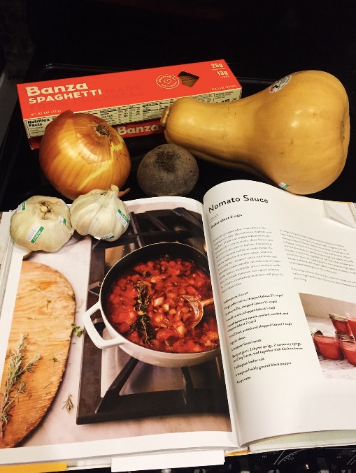 The biggest undertaking of this cookbook, however, was the "Nomato" sauce found on pg. 191. It is intended to serve as a substitute sauce for those who don’t like tomatoes. Nightshade vegetables (like tomatoes, eggplant, and peppers, according to The Clean Plate), can act as inflammatory triggers for people with chronic illnesses, so this recipe serves as a substitute for people with those kind of restrictions.