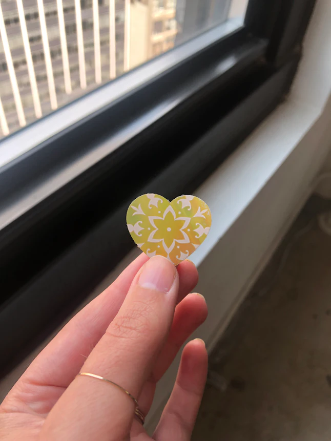 For my next experience, I went with the Self Love sticker — the brand’s second most popular seller after Anti-Anxiety, according to DeClerq — which is supposed to "assist with transformation and miracles." While my mood was generally untransformed, we did get to order the most delicious pizza for lunch during a shoot and it arrived in under 30 minutes, which I consider fairly close to miraculous during the NYC lunchtime delivery rush. Sadly, the sticker fell off shortly after I had finished my food, and no further miracles occurred that afternoon.