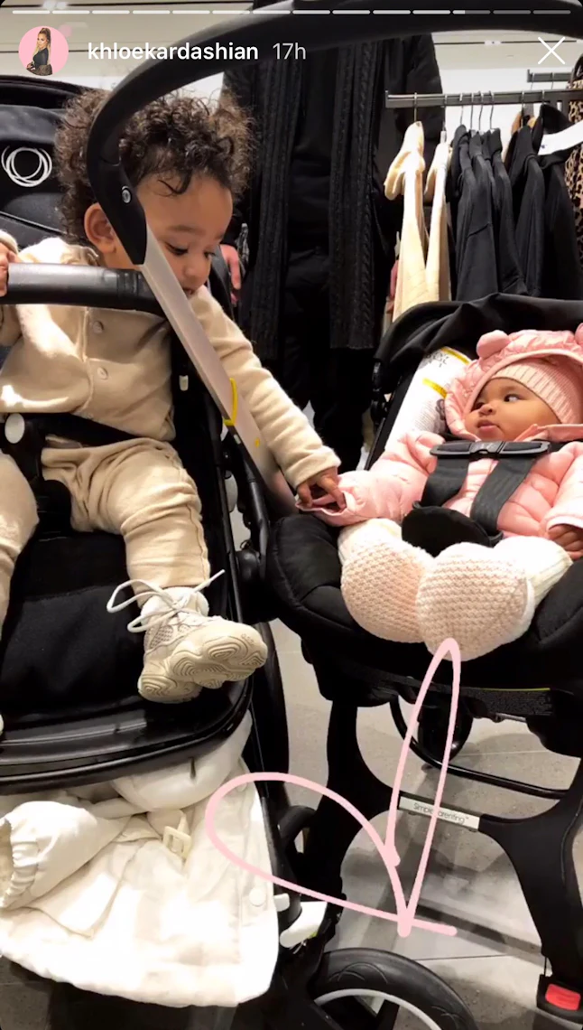 The two simply adorable photos feature Kardashian’s daughter True Thompson and Chicago West, Kim Kardashian’s youngest child, during what appears to be a playdate between the two cousins. In one of the snaps, the youngsters — who are both matching in pink outfits, by the way — can be seen sitting in their respective, side-by-side strollers. Even though True and Chicago were sitting in separate baby carriages, they couldn’t help but reach out to one another, as Chicago goes to hold her little cousin’s hand. And trust me, it’s even more adorable than it sounds.