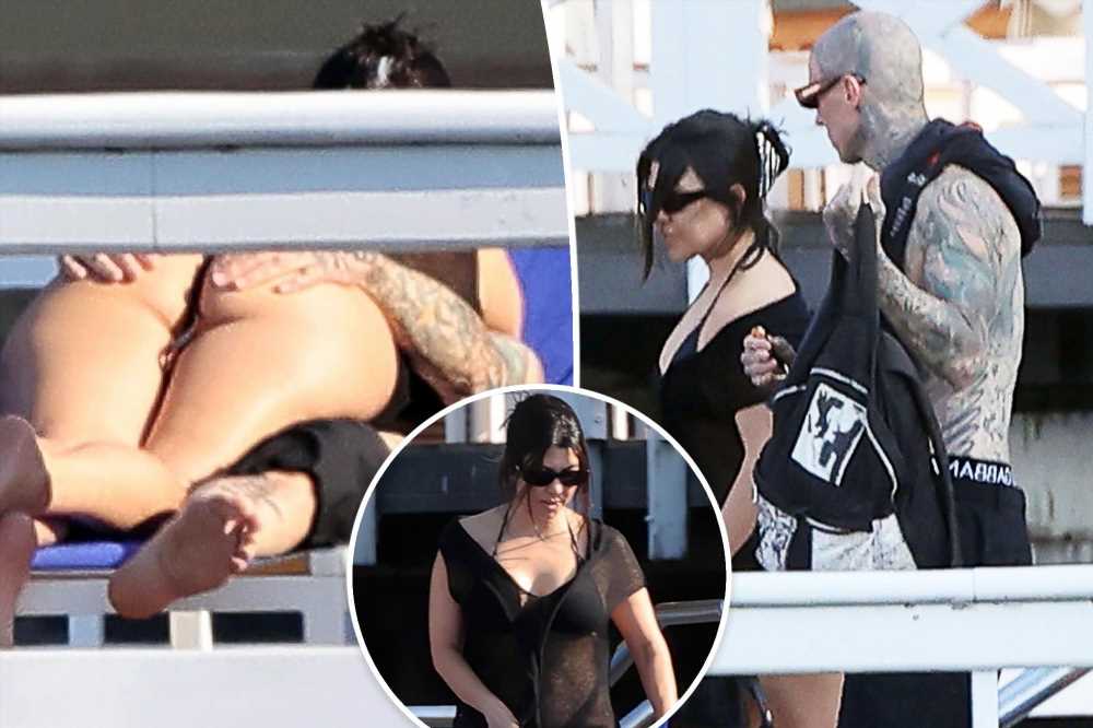 Barker grabbed Kardashian’s butt as she lay on his chest.