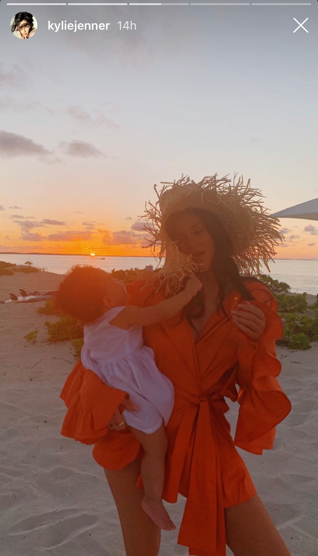 On her Instagram Story, Jenner posted even more photos from her tropical vacation featuring her daughter on Jan. 17. Naturally, the snaps were all kinds of cute. The reality star, complete in an orange, holiday-approved outfit, posed with Stormi on the beach.