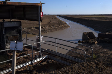 An irrigation canal near Jerilderie, a NSW region of the Murray-Darling Basin. Scientists appear to be increasingly divided over the future of water within the country’s food bowl.Credit:Nick Moir