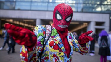 A fan dressed as Spider-Man poses during New York Comic Con.Credit:Invision/AP